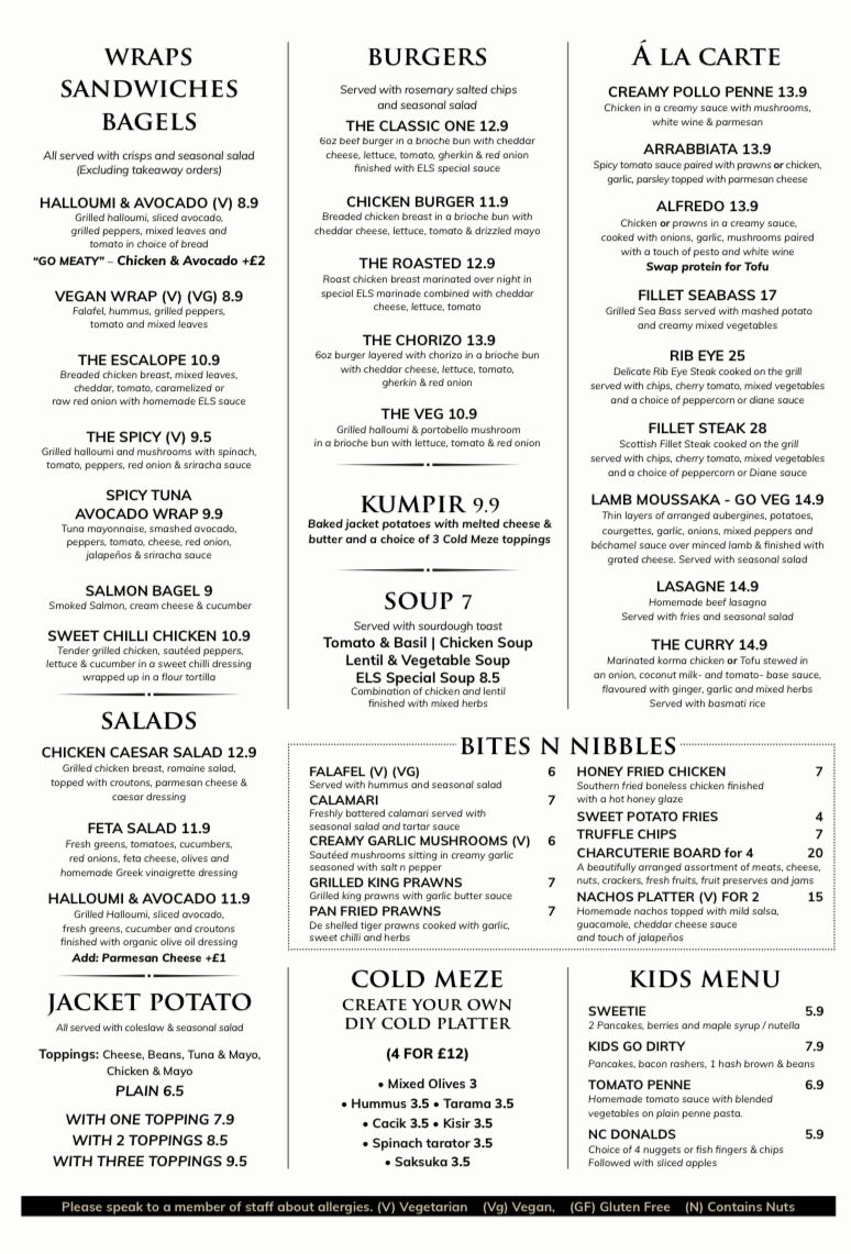 The menu at Els Bistro & Bar offers a variety of food options suitable for different times of the day, including breakfast, light meals, and more substantial dishes. The selection is organized into several main categories to accommodate a range of dining preferences.
